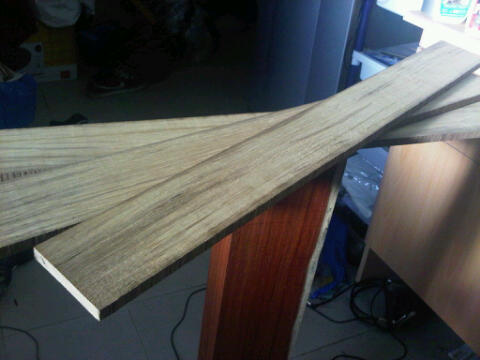 The other day I went to a local lumber salesman in Mylapore and found some interesting species of wood. I asked the merchant to mill the wood to my specifications and later I returned home with some nice looking pieces. I decided to go with Wenge for the body, Paduk for the Neck and Teak for the fretboard.