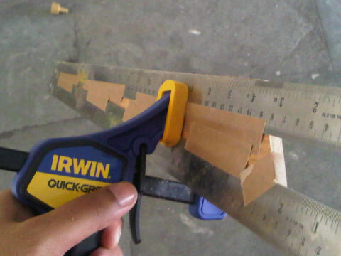 I realised after looking at my fretboard, that the sides were jagged as hell. I started to sand the high points down but quickly realised that without a way of checking myself, the end result would be just as crooked. So once again I brought the metal rulers, clamps and binding tape out…