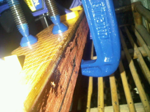 The glue I used was epoxy. Its my first time using this and it is sticky as all hell. So after making a royal mess I clamped the fretboard and let it sit for 24 hrs to fully harden. Then I had to sand the uneven ends with 35 and 60 grit sandpaper (which sucked) but eventually it became smooth. Then I steel wooled it for smoother handling. Now for fretwork.
