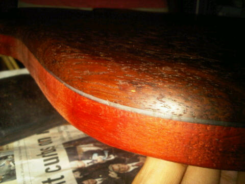 November 23, 2010November 23, 2010 Recovery!!! Despite a noticible glue line, the gash completely healed!!! Then I finished rounding the body, wet sanded with lemon oil and 600 grit sandpaper. Now onto Neck Pocket Routing…I hate this part… Share this: Click to email a link to a friend (Opens in new window) Email Click to print (Opens in new window) Print Click to share on Facebook (Opens in new window) Facebook Click to share on X (Opens in new window) X Like Loading... Related