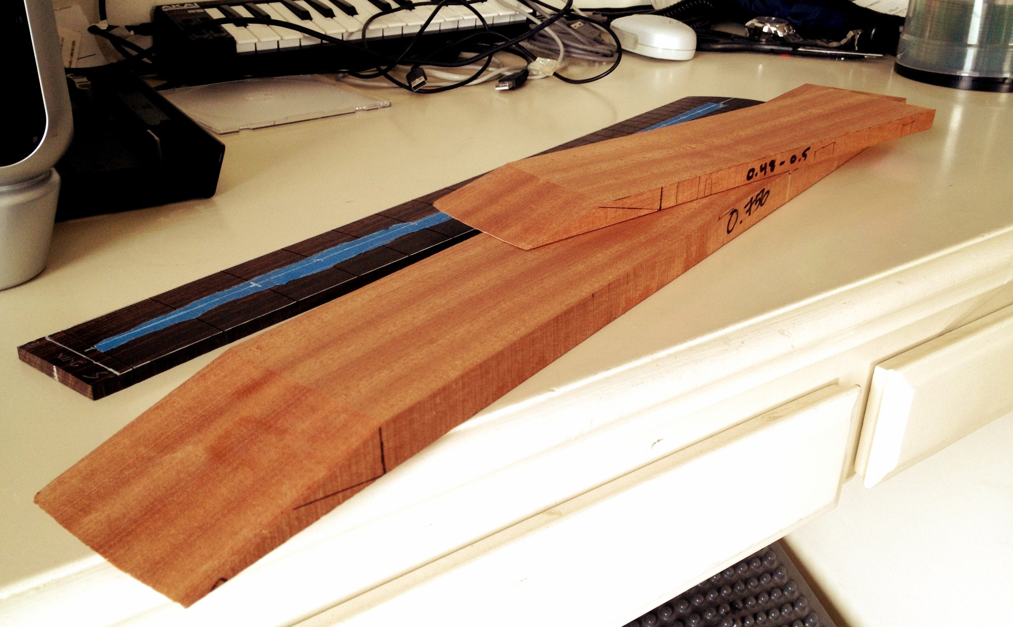I found a very nice company that helped me plane my neck pieces. It’s a family owned company called JD cabinets in the Fountain Valley/ Santa Ana area. Mark and Steve were great to work with and I’ll probably be using this company for all the major cutting and planing work. All that’s left right now is to even out the gluing surfaces.
