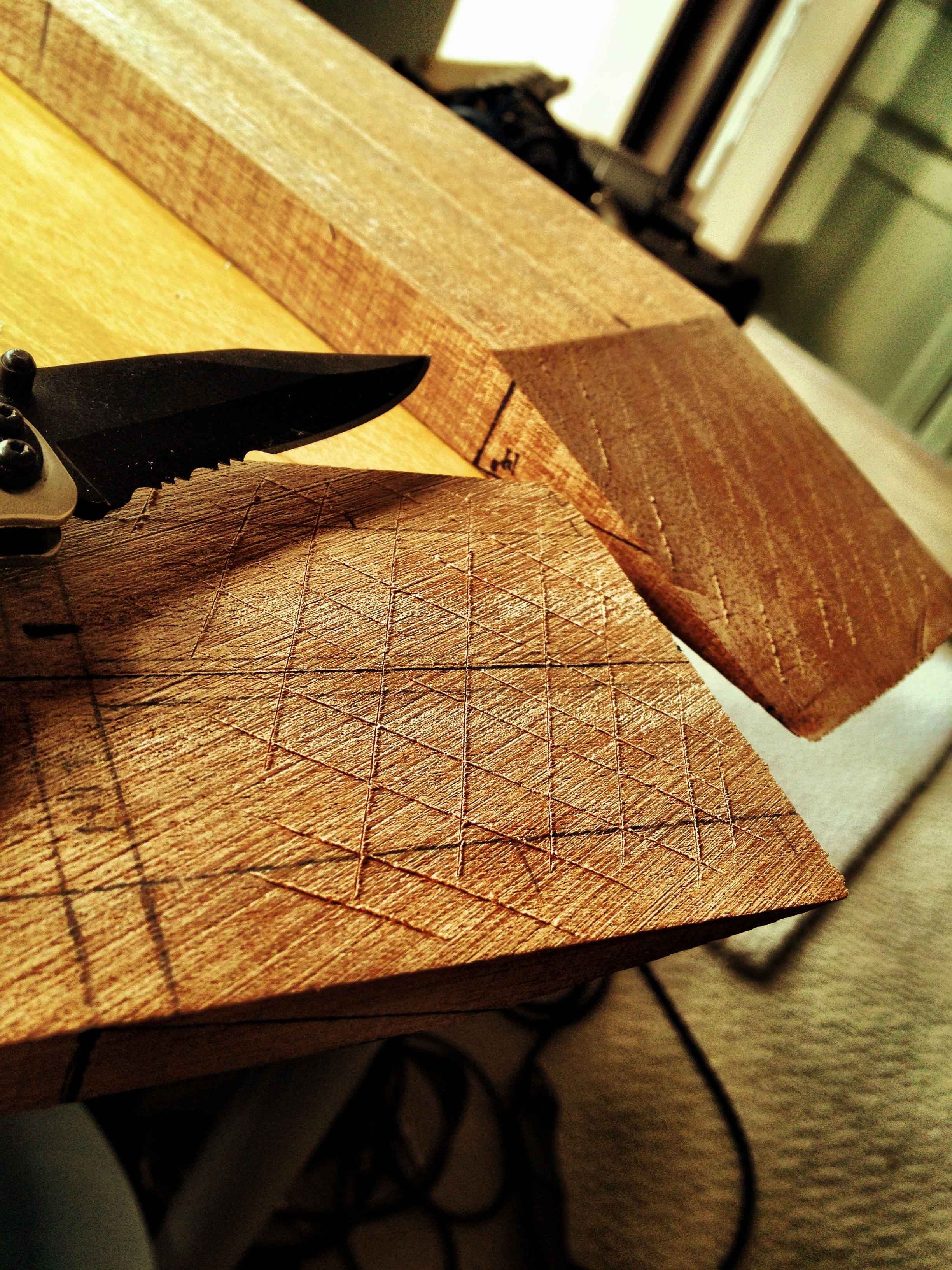 After this is all done ill take it and have the flat sides jointed just to be extra sure that it’s flat as a board. The joint itself has about four clamps on it; one large Irwin quik clamp which exerts about 300 lbs of pressure and three smaller clamps each exerting about 100 lbs each. Tomorrow afternoon I’ll take the clamps off an we’ll see how my first scarf turns out.