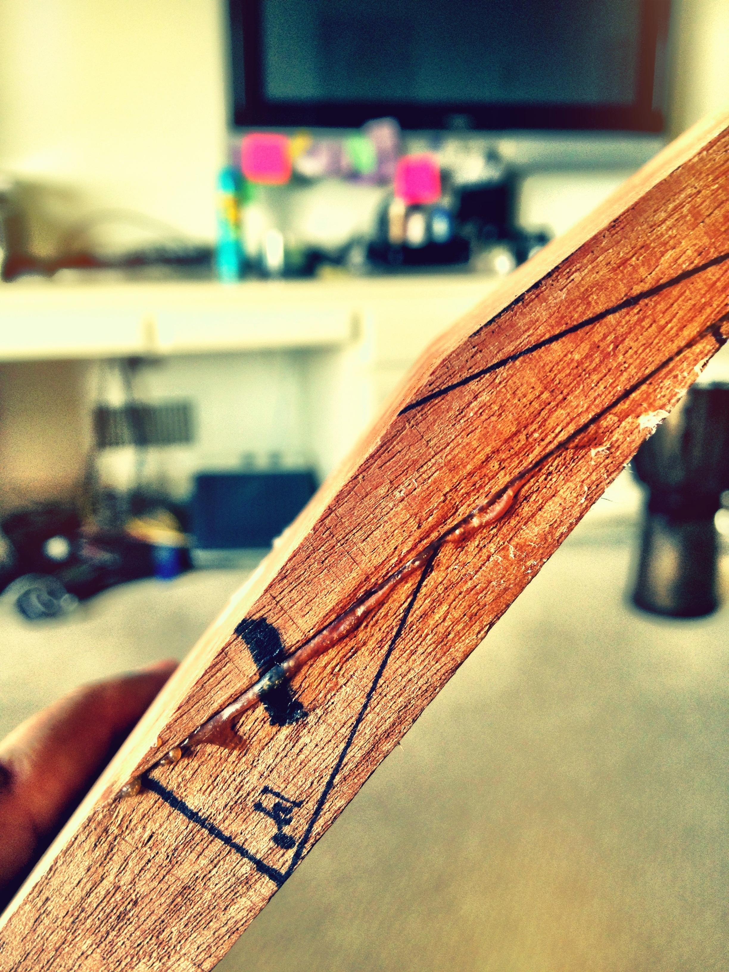 Yup. Scarf joint was a success. There was an ample amount of glue squeeze out from each area, and with 600lbs of pressure for over 24 hrs should have left the joint stronger than the wood itself! Now time to glue the ears on the headstock and take it to JD Cabinets for some jointing to make sure the fretboard surface is perfectly level. If they can I might just have them cut the neck shape and the body shape as well. Fingers crossed.
