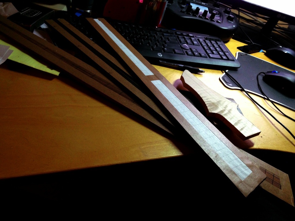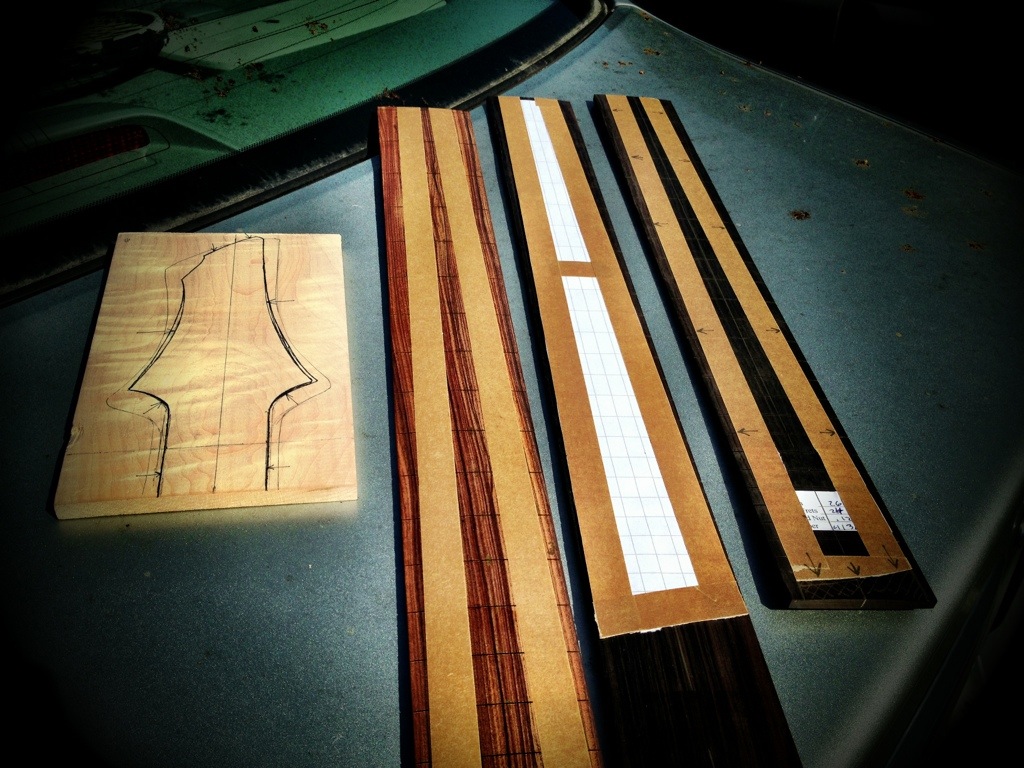 Took these fretboard blanks to get rough sawn on the bandsaw to the appropriate taper. It was a bit harder than usual cause the boards themselves weren’t squared. Either way I’m excited. Now to stick some sandpaper on a flat surface and true up the sides.