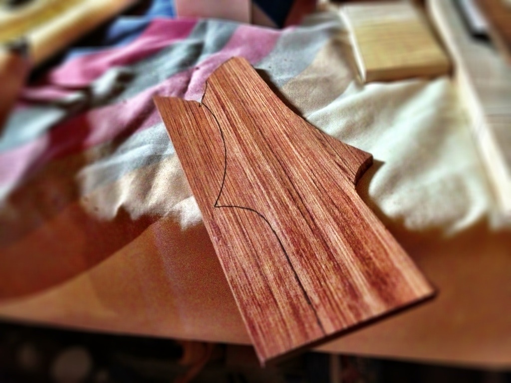 February 20, 2013February 20, 2013 Jormugandr’s Headstock Today I cut jormugandr’s headstock. The bubinga looks stunning. Gonna use the lightly quilted maple with this one instead of redwood like it was planned before. I’m thinking the contrast would look much better. Share this: Click to email a link to a friend (Opens in new window) Email Click to print (Opens in new window) Print Click to share on Facebook (Opens in new window) Facebook Click to share on X (Opens in new window) X Like Loading... Related