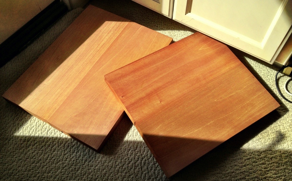 Man when I glued these up I thought I messed up. I saw a giant glue line and thought that I’d have to dismantle everything. I took it to JD Cabinets in Fountain Valley on a trip to PetSmart and had them plane and sand these down using their giant drum sander. Man these look AWESOME!