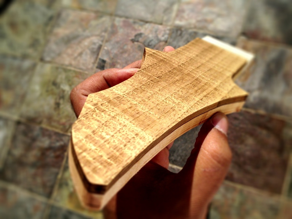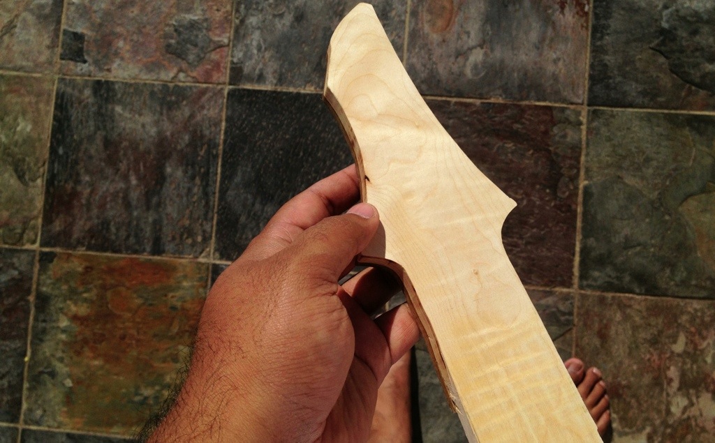 February 28, 2013February 28, 2013 Bahamut’s Headstock pt. 2 This looks sharp now that’s its cleaned up. Now to cut the scarf and glue it up tonight!!! Then it’s time to route the truss rod channels for all of these as well as mount the T nuts. Share this: Click to email a link to a friend (Opens in new window) Email Click to print (Opens in new window) Print Click to share on Facebook (Opens in new window) Facebook Click to share on X (Opens in new window) X Like Loading... Related