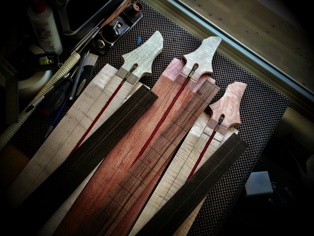 So all truss rods are routed and the neck shapes require bandsawing. I think I just might rough cut with my jigsaw once I get a sawhorse. I was thinking of going at it with my Ryoba but it will make my arm look like Popeyes’. The single it template is cleaned up and sanded and ready for action.