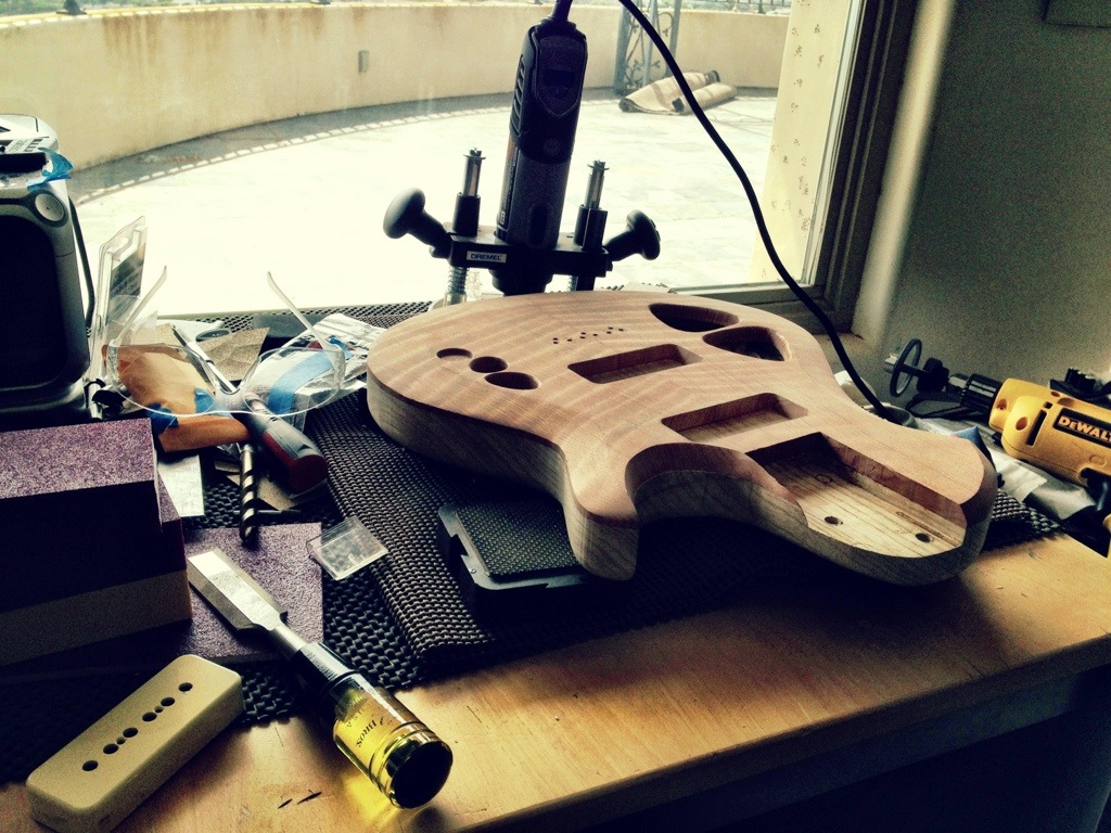 Tonight ill cut the fretwire and hopefully if I have time ill get to press them in at Joel Grant’s shop in fountain valley. Since its gonna go to him for fretwork anyways he’s lettin me do it at his place. This will save him time and labor as opposed to when I’d hammer in the frets instead.