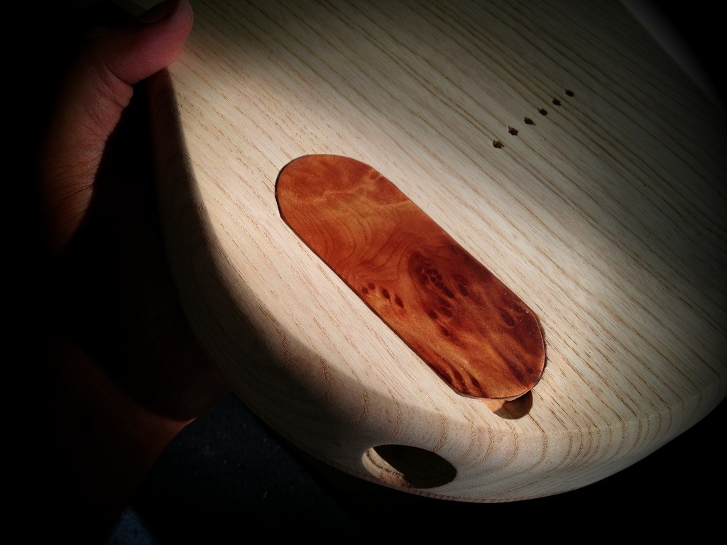 Body’s ready for the zpoxy treatment! Woooo this is awesome. Also fitted the electrosocket jack. You can see how I used a 1in forstner for the lip and a 7/8 in forstner to drill the hole.