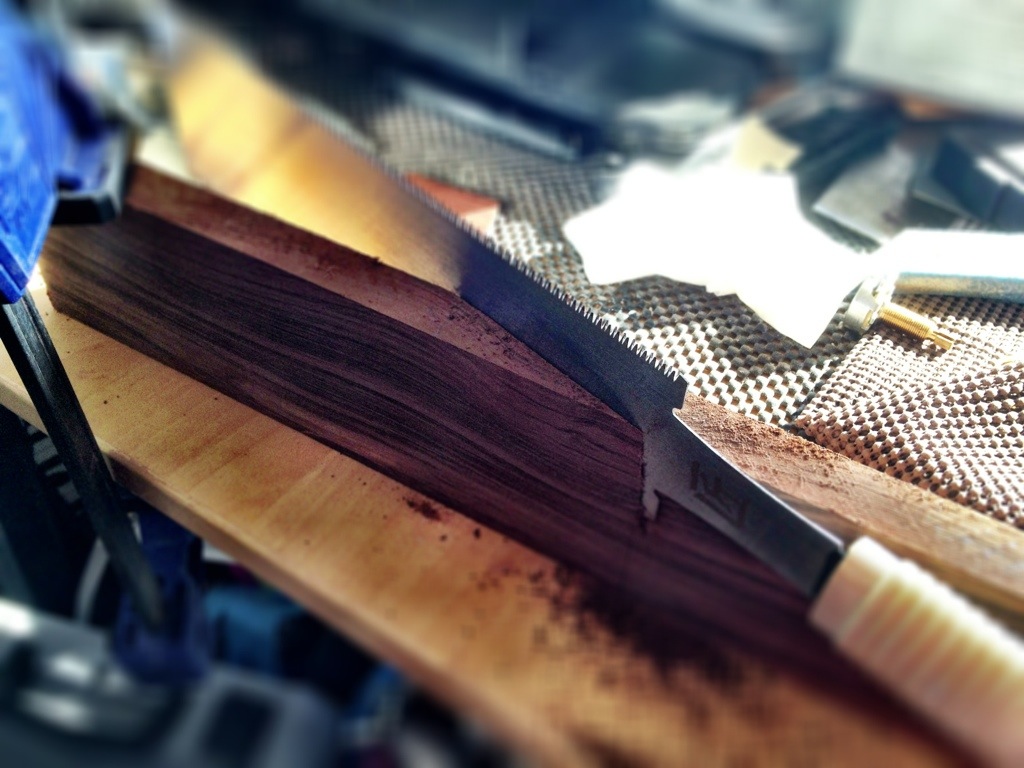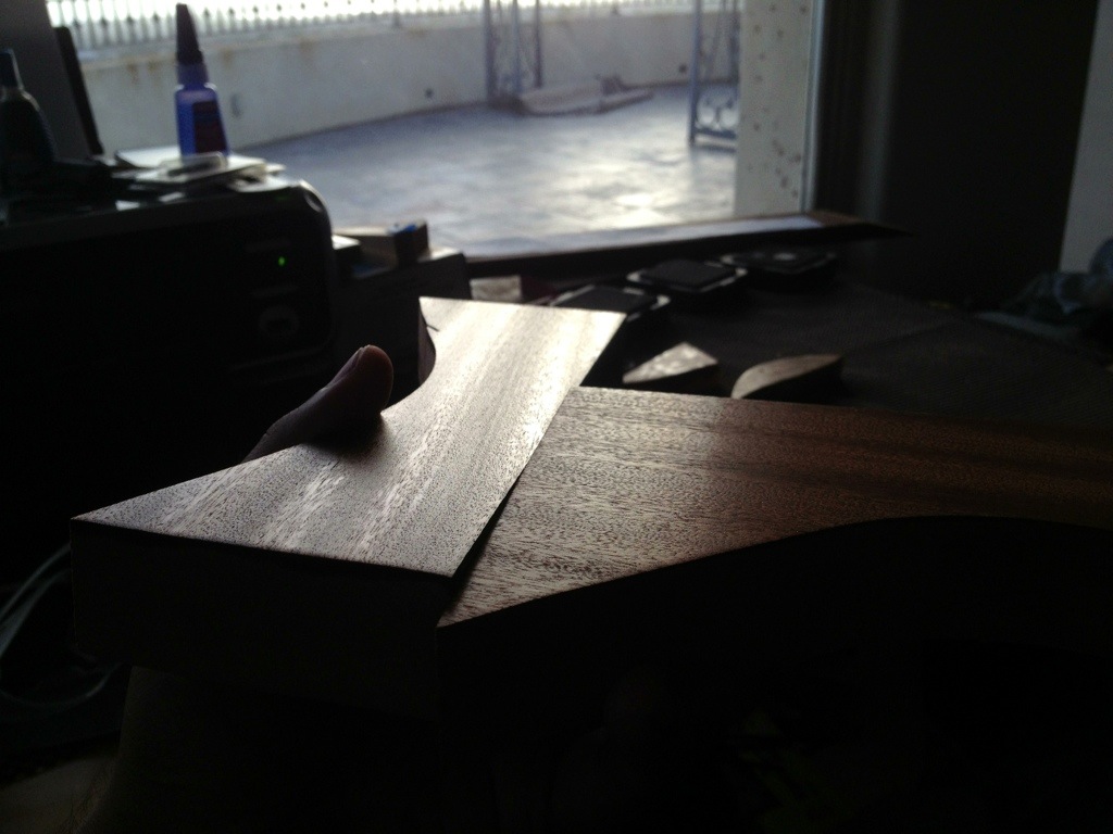 Also cut the rough scarf joint in the tough as hell tiger rosewood. Then started some finishing tests on some scrap.