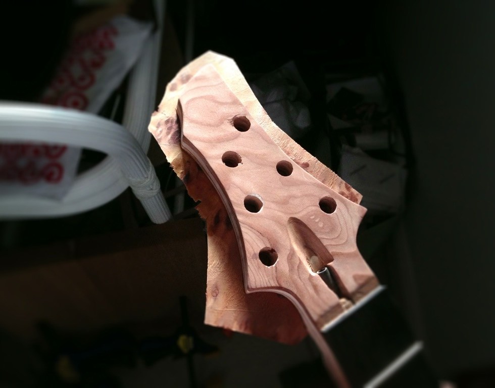 Peghead Veneer Glued and Shaped