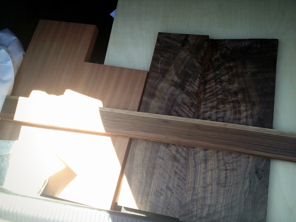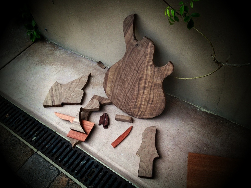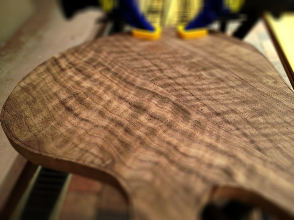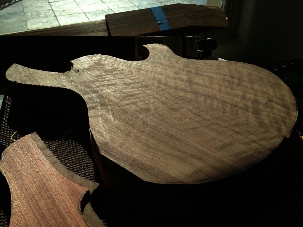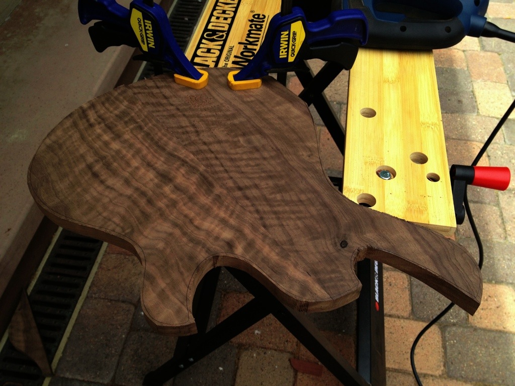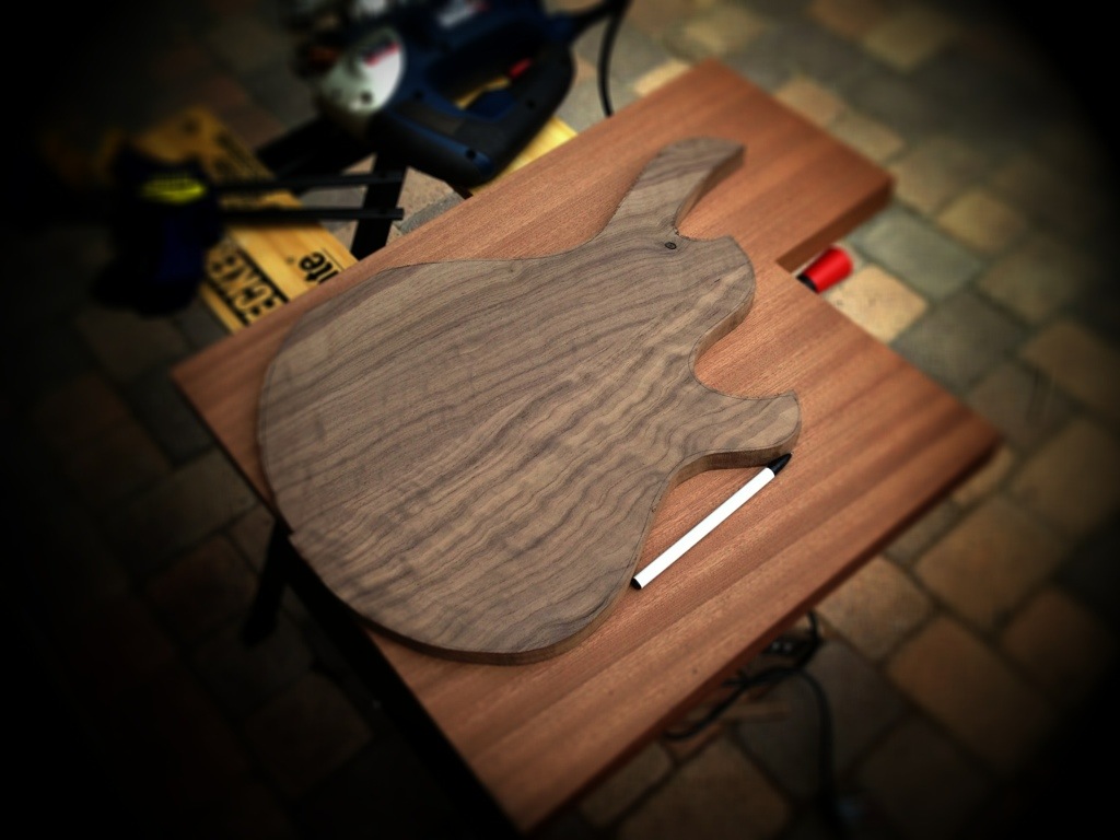 I also jigsawed the walnuts body. It’s going to be used with my new double cut design. I might take a forstner to the sapele so I can cut the 6.4 lb body down to a 5 or so.