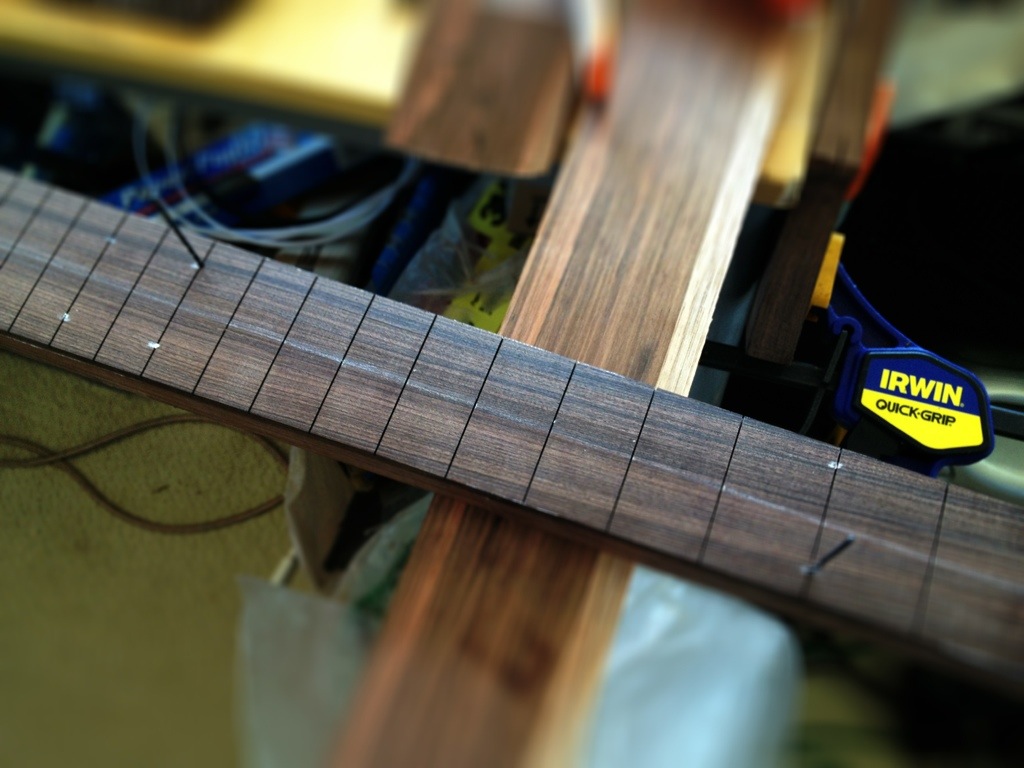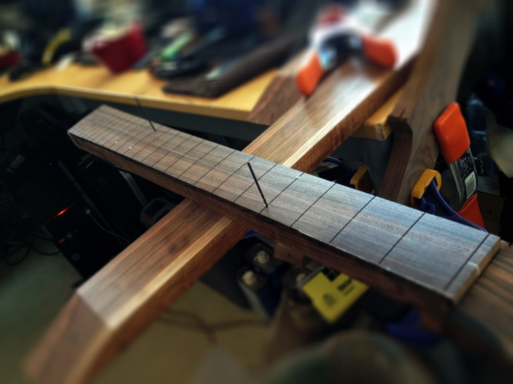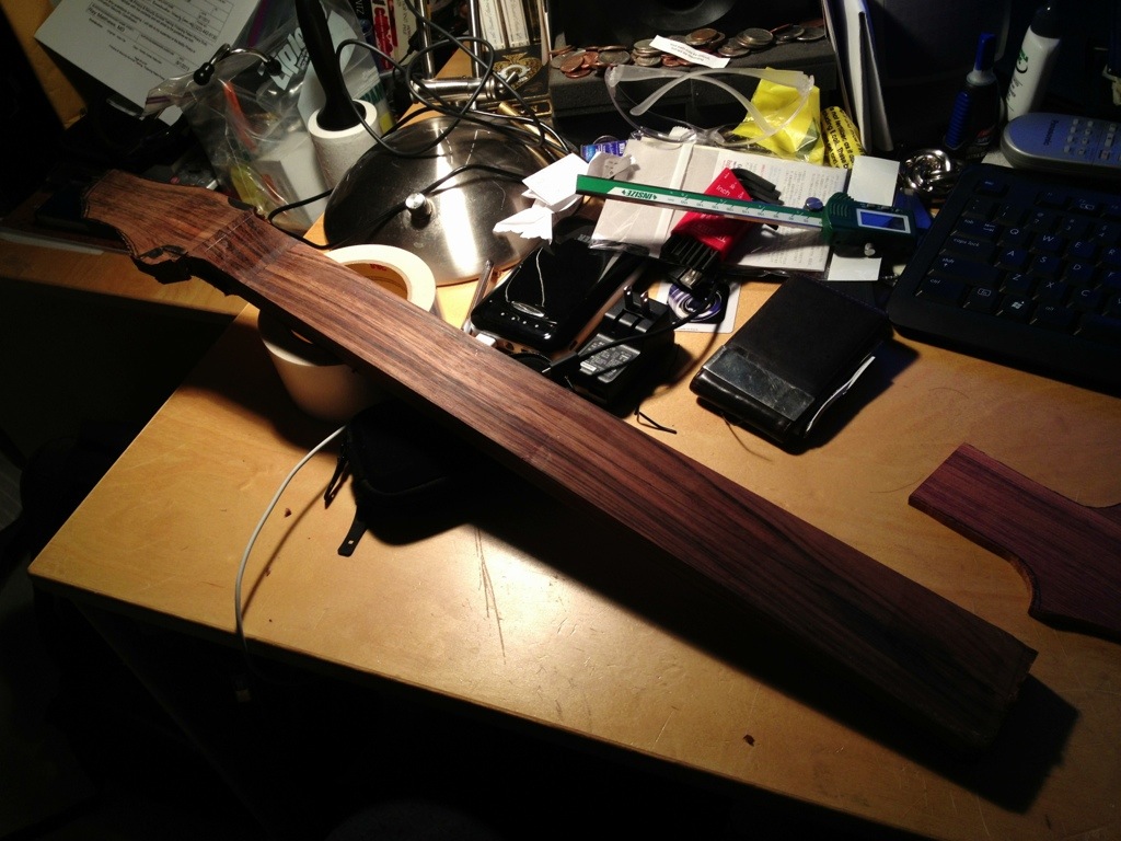 The neck is tiger rosewood. Splinters when routed but looks fantastic. Reminds me of Macassar ebony almost. It’s very dense and inexpensive.