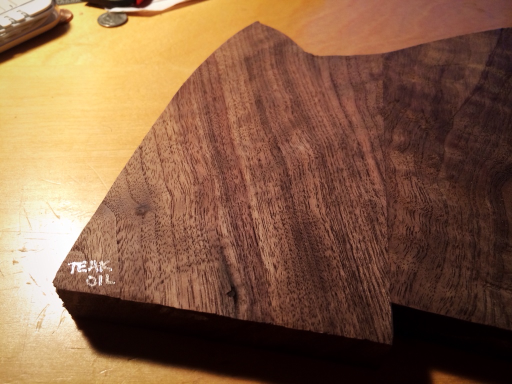 1. For this test im using teak oil (tung based). you can mix it with a cobalt drier to make it cure faster but im not in a rush. For danish oil you can add japan drier. same with tru oil; you can also mix japan drier. Thing is japan drier smells awful and only requires a few drops to a small capful if you are using a small bottle.