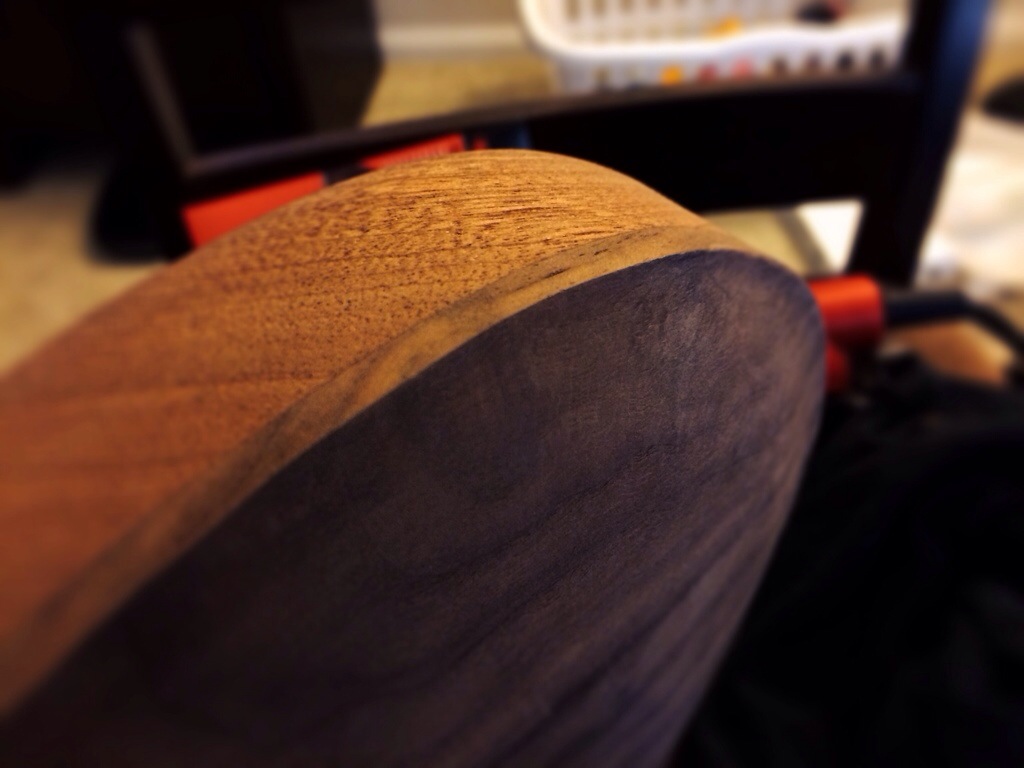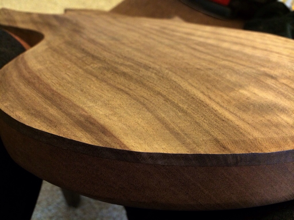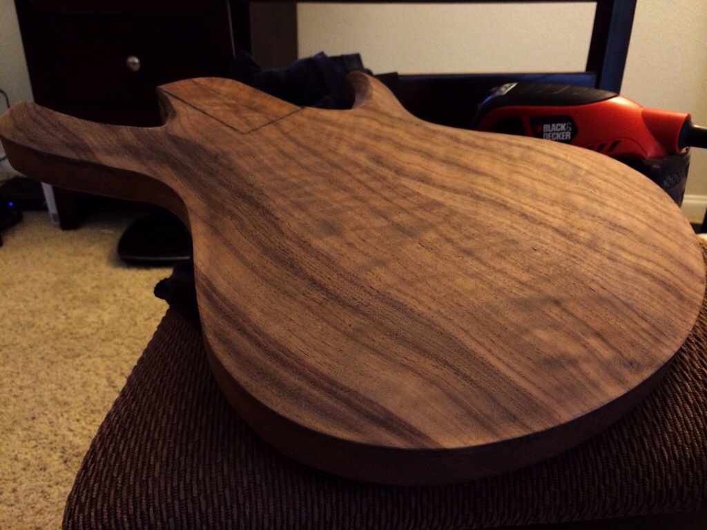 Smoothed out the lip and sanded to 120 grit. It’s gonna be sanded further to 220 then oiled; But that’s after the neck pocket and control cavity’s routed and bridge drilled.