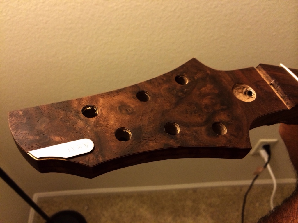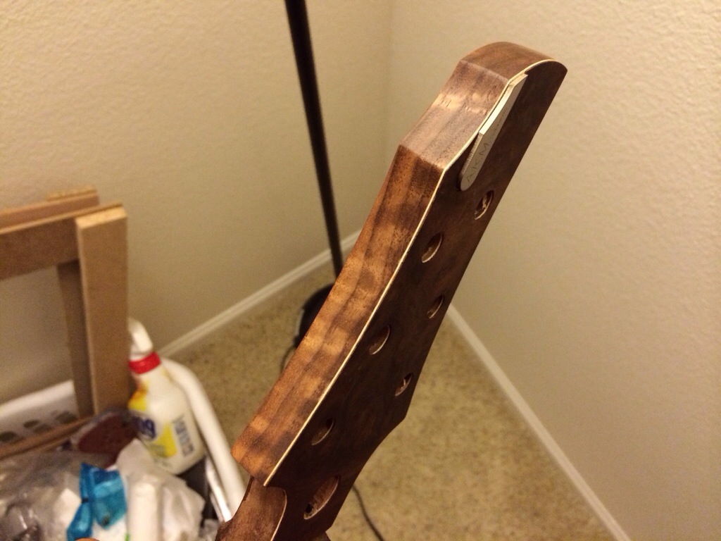 I took my tiny detail sander and sanded the headstock face, back, top and sides. I left the hips because I’ll be rasping tomorrow. My hand was cramping from the manual sanding of the body but the results are worth it. That detail sander is a godsend. With some finesse you can do a lot with it, including shaping.