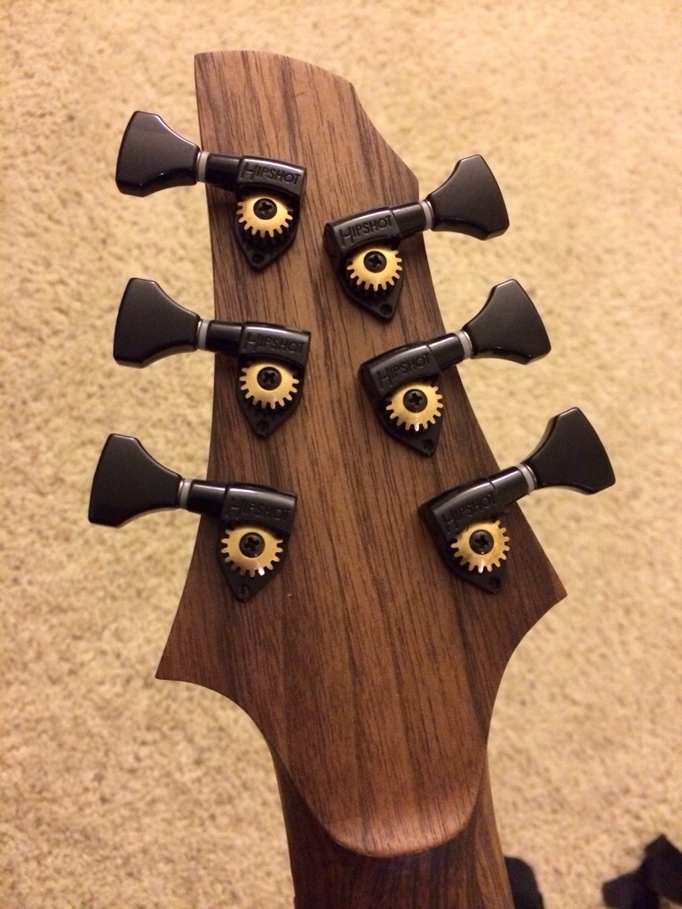 The tuners are now installed and the screws in the back went in without needing pilot holes. I’m going to order a thicker baseplate because it’ll be easier to clear the frets. This works but I’ll get an additional 0.11 in clearance vs 0.06 from the guitar surface with this base.