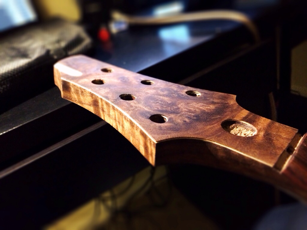 I realized I don’t have a place holder nut so I made a little block of ebony do the trick for now. I’ve been waiting for a full string up to hear the resonance and character of the guitar and I am completely happy.