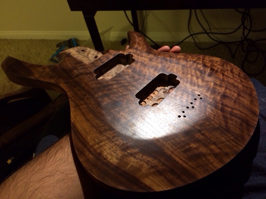 1. thanks peter!! ive always done samples of this but this is the first time im actually doing an oil and wax finish for an entire guitar. I LOVE the look and feel of it. I also love the fact that its gonna wear faster than a lacqered guitar. it’ll give this guitar so much more mojo. my buddy ryan’s gonna love this one