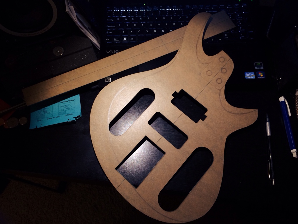 After this is glued I’ll take everything to the downtown artist space and spend an hour or two cutting everything out on the bandsaw, then I’ll cut the birch templates out as well and route them flush with the master template made by Joe Moes. Then il use the birch templates to clean the edges of the body and top once they are glued. Most importantly ill do some weight relief on the bodies beforehand.
