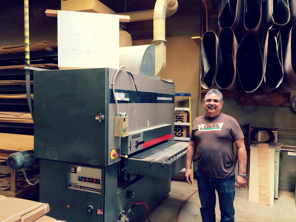After my haircut I managed to make it to Reta’s Cabinets owned by Rudy Reta. Super nice guy who’s been helping me shave hours off my sanding time with the huge sanding machine you see in the picture. The two giant rolls sand from 80 to 120 so the final product is pretty awesome looking.