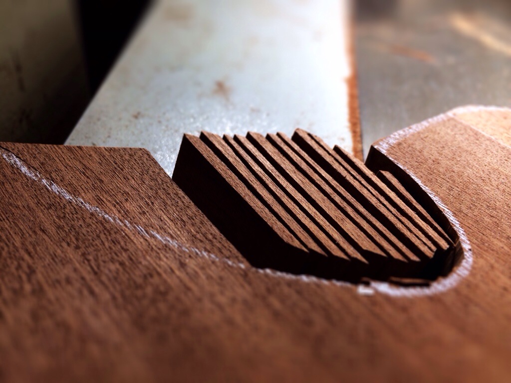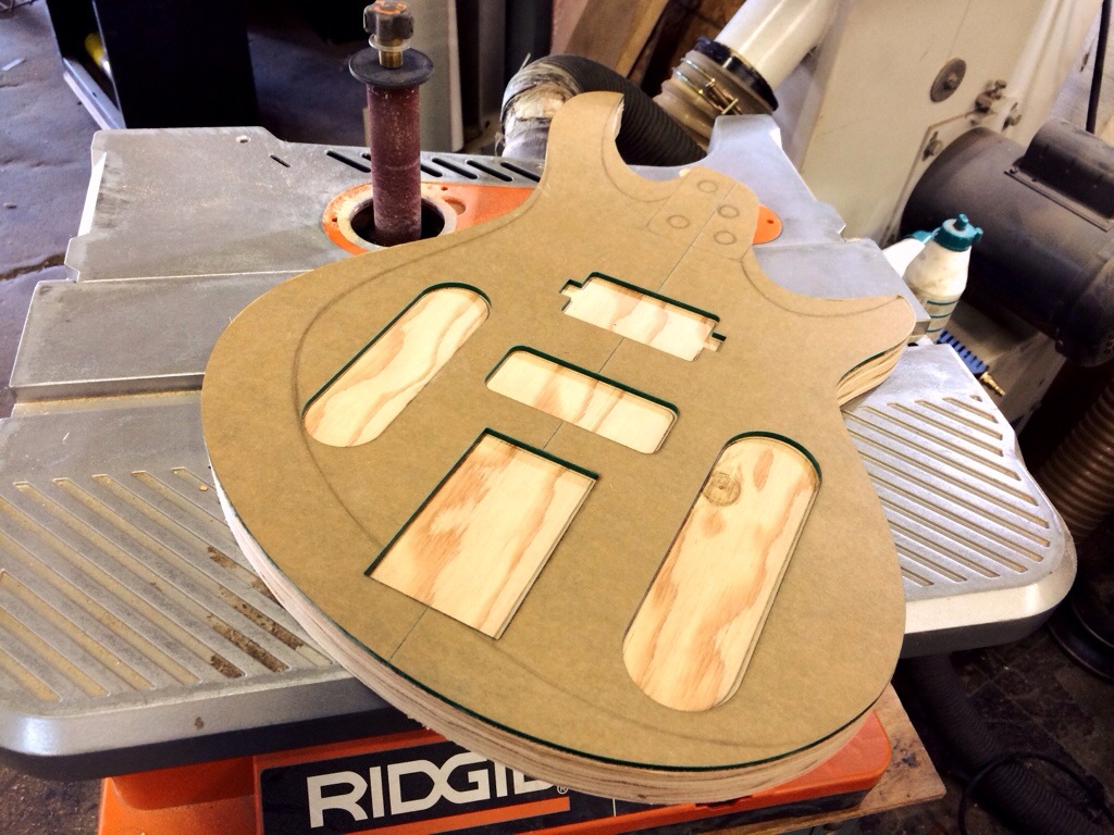 Spend some time at the Downtown Artist Space in LA. Burris was super helpful and helped me get started at the bandsaw. For my first time using it I think I did really well. I managed to cut out the head plate shapes, head scarfs, body and tops. I also got the templates cut and sanded. I also hogged out a little bit of wood to balance out the body, once the neck routes, control cavities and pickup routes are made the body will be much lighter. Also the body has a very beautiful tpa tone. It’s almost like playing a marimba. I just cannot wait to get this build done. I’m more excited to see this through than the burl maple build!