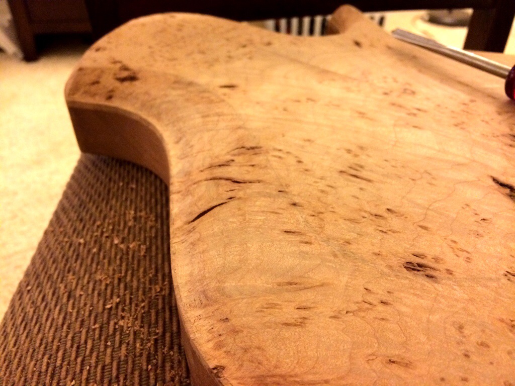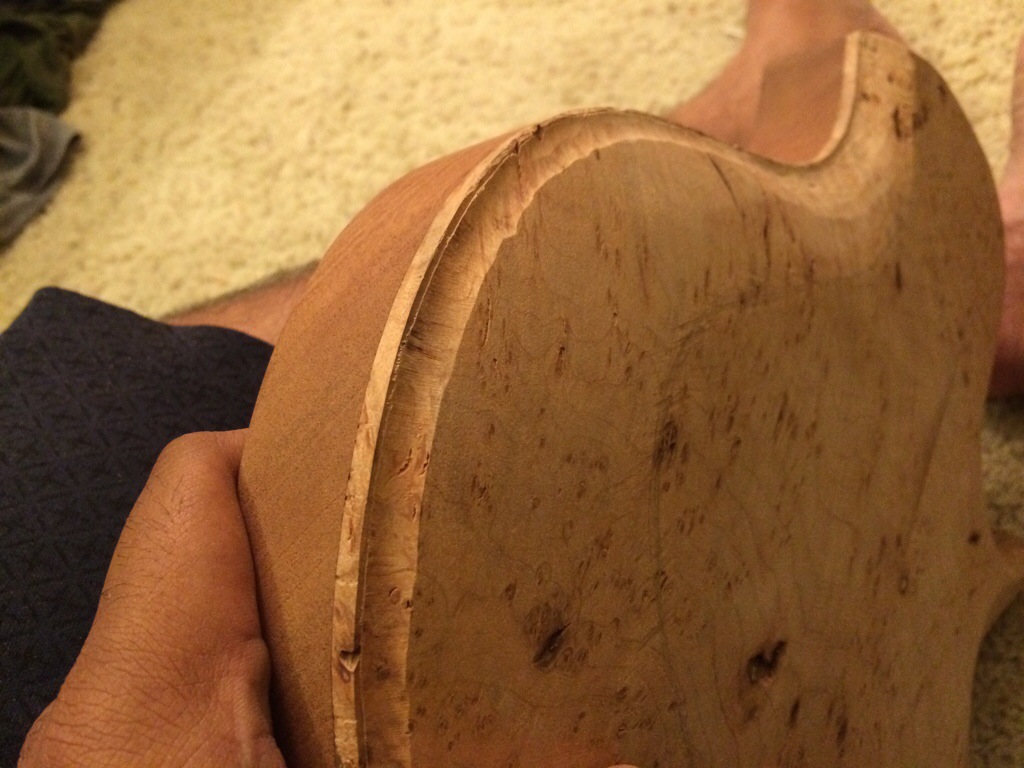 This looks nice. My technique after contouring the top is to take the dremel tool and sand away around the border to create a dip/lip. Then you sand to blend the difference. I use a black and decker mouse sander for that. Literally go to town on it until I like the way it looks. Only took about 30 min to do this part.