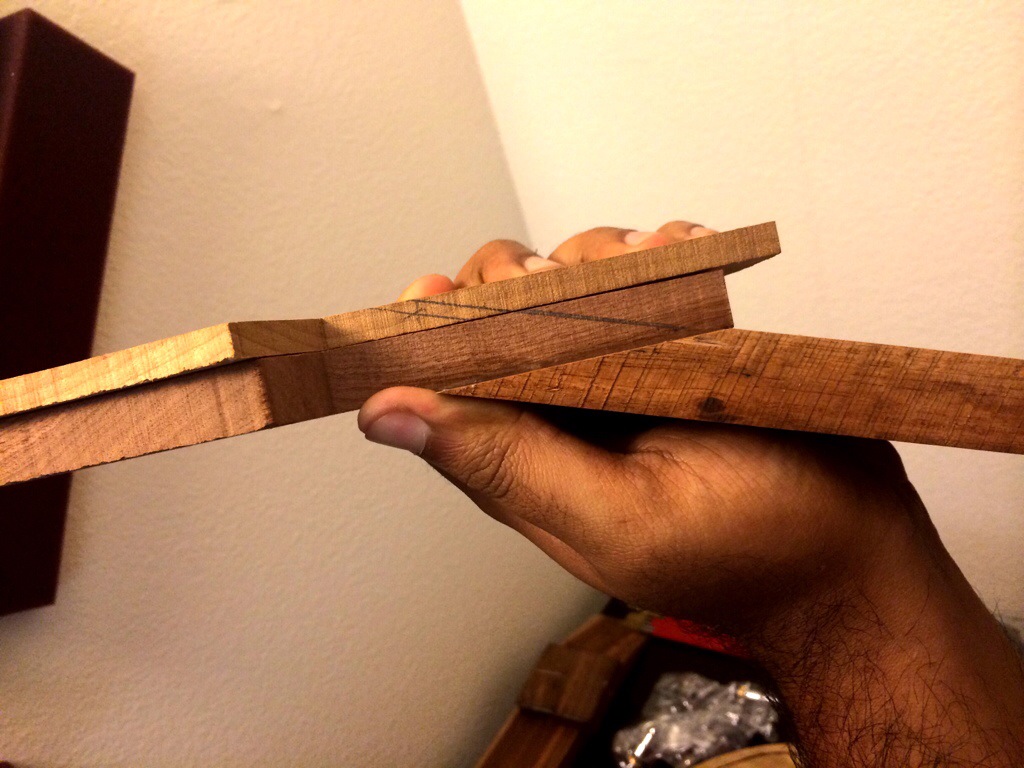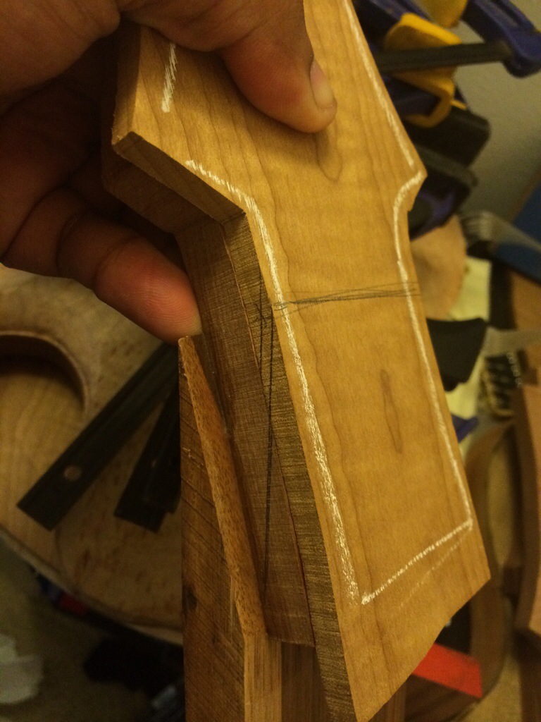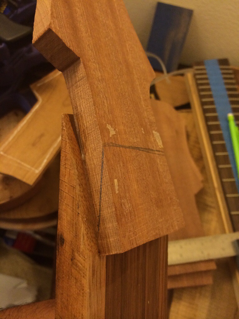 I’ve received a few questions regarding the way I started doing scarf joints. I adapted my method from watching other builders like Dylan from daemoness and Aaron from blackwater guitars. Basically you rough shape your head piece as a block and glue it on without marching the angle. I did this because when I used to cut the angle, it often times would slip down a bit. Which made things difficult because I had to plane the entire flat surface of the neck down. I don’t have proper tools to do that accurately. So in order to get the job done I had to account for my possible mistakes. So I don’t bother anymore lol. I glue it as is then plane it down using rasps and a hand plane. You can see it in my last walnut build. Worked better than anything I’ve done before.