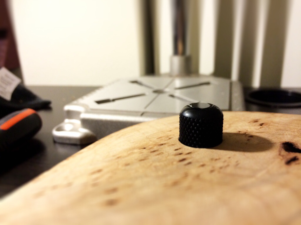 I finalized the shape of the roasted maple heel as well. I opted for a radiused look to fit the curves and contours of the body since my normal asymmetrical fretboard end just didn’t flow well visually to me. This works better in my opinion. I also used a 3/4 forstner to countersink the volume pot. My goal is to make sure Joel doesn’t have to do too much extra work that I can do myself.
