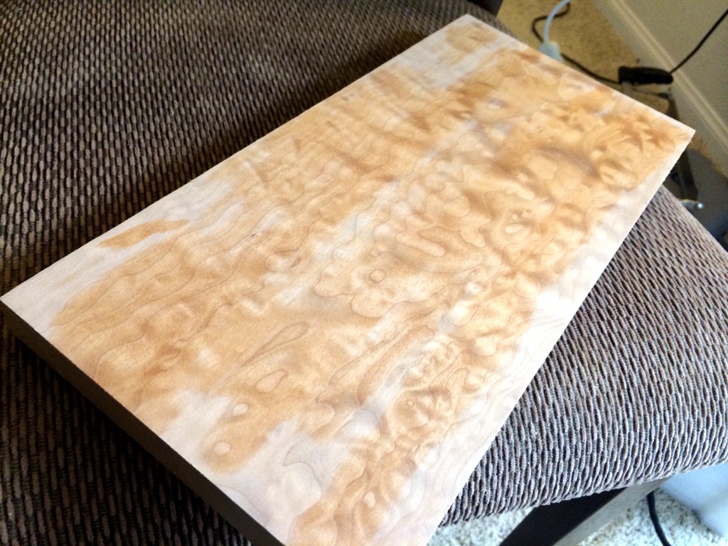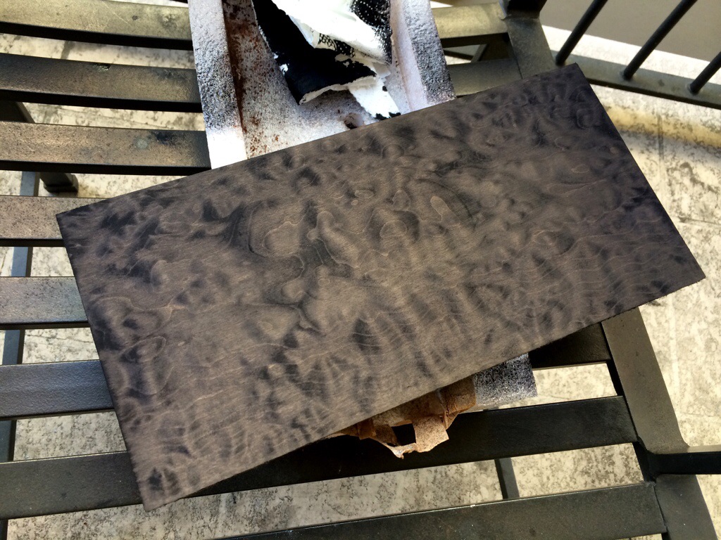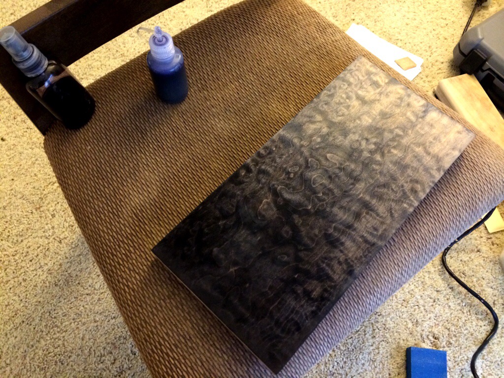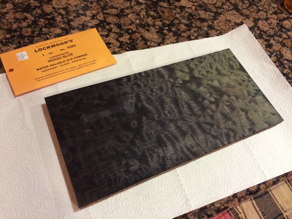 May 13, 2014May 13, 2014 Quilted Maple Dye test part 1 Need to buy the peacock blue color but this will do to get my technique down. It’s a fade from ebony to navy to indigo. I really like how it’s coming along. Share this: Click to email a link to a friend (Opens in new window) Email Click to print (Opens in new window) Print Click to share on Facebook (Opens in new window) Facebook Click to share on X (Opens in new window) X Like Loading... Related