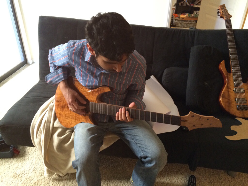This is going to be a really fun build alongside Roger’s semi hollow. I’m fortunate to have the chance to work with Ganesh on his build which will be a drop tuned beast of a guitar. Our goal is to make an instrument which can handle the extreme low tunings that Ganesh employs in his compositions (google empyrean and Eden 2.0 by TesseracT, to see some of his work). This will be a 30 in scale true baritone tuned standard G dropped F.