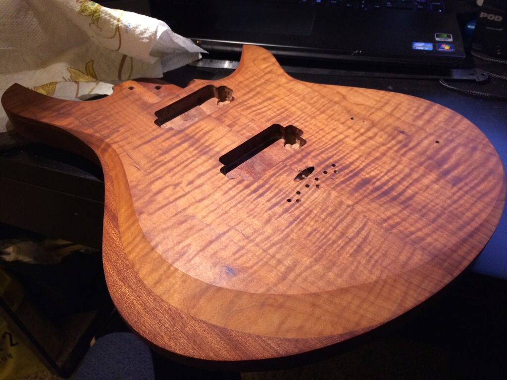 It looks beautiful. There are some areas in the cutaways where I’ll have to sand more diligently but the face and back and sides looks stunning.