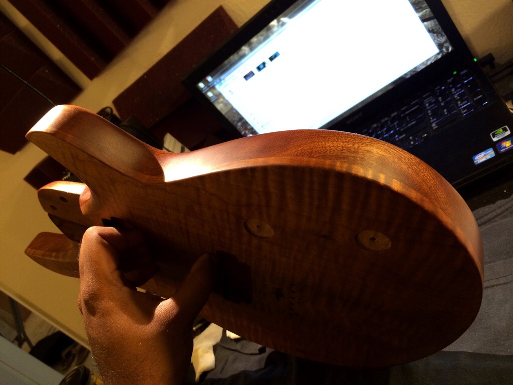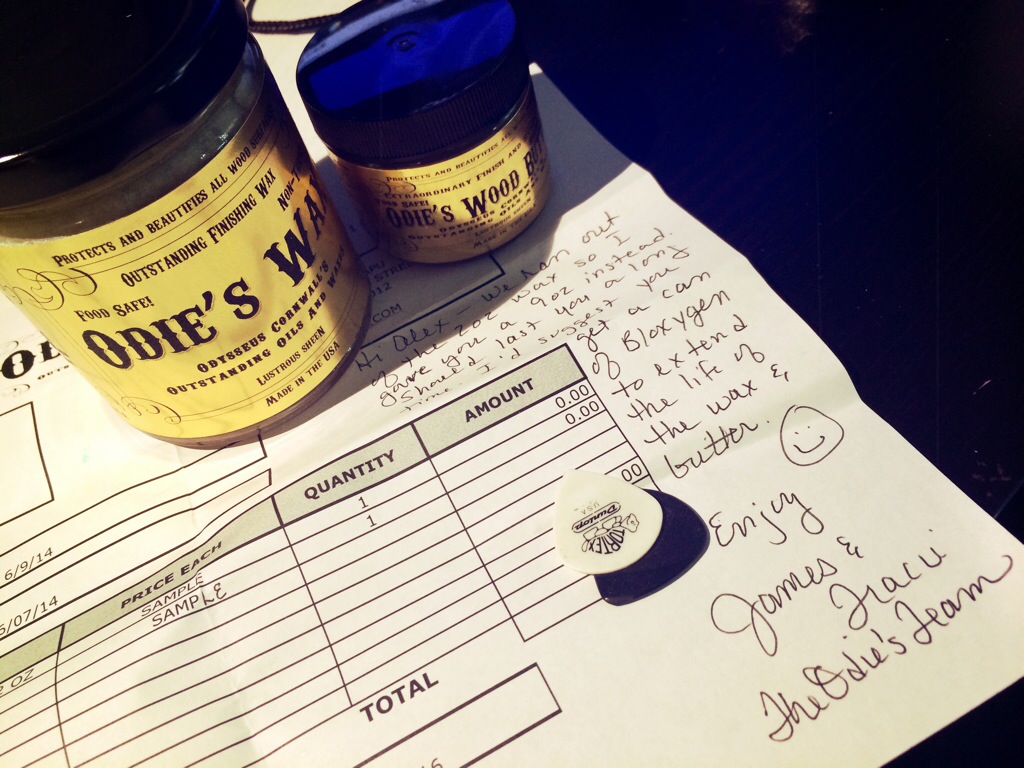 Thanks to James and Tracie over at Odies Oil for sending me the samples to use on this guitar. I gotta say everything’s looking pretty spectacular right now. The pictures show the application and buffing which took place about an hour apart.