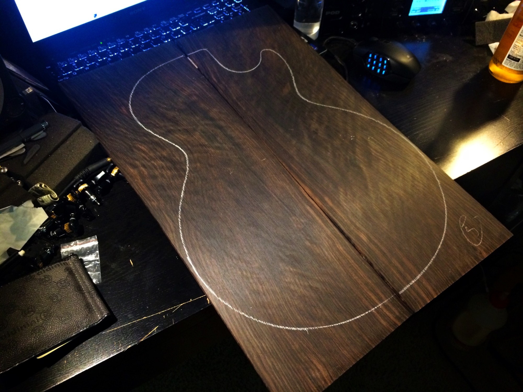 Ebony will be bound with ivoroid as will the Bastogne walnut. Both will have nice black Limba bodies and will be 26 scale 24 fret 6 strings.