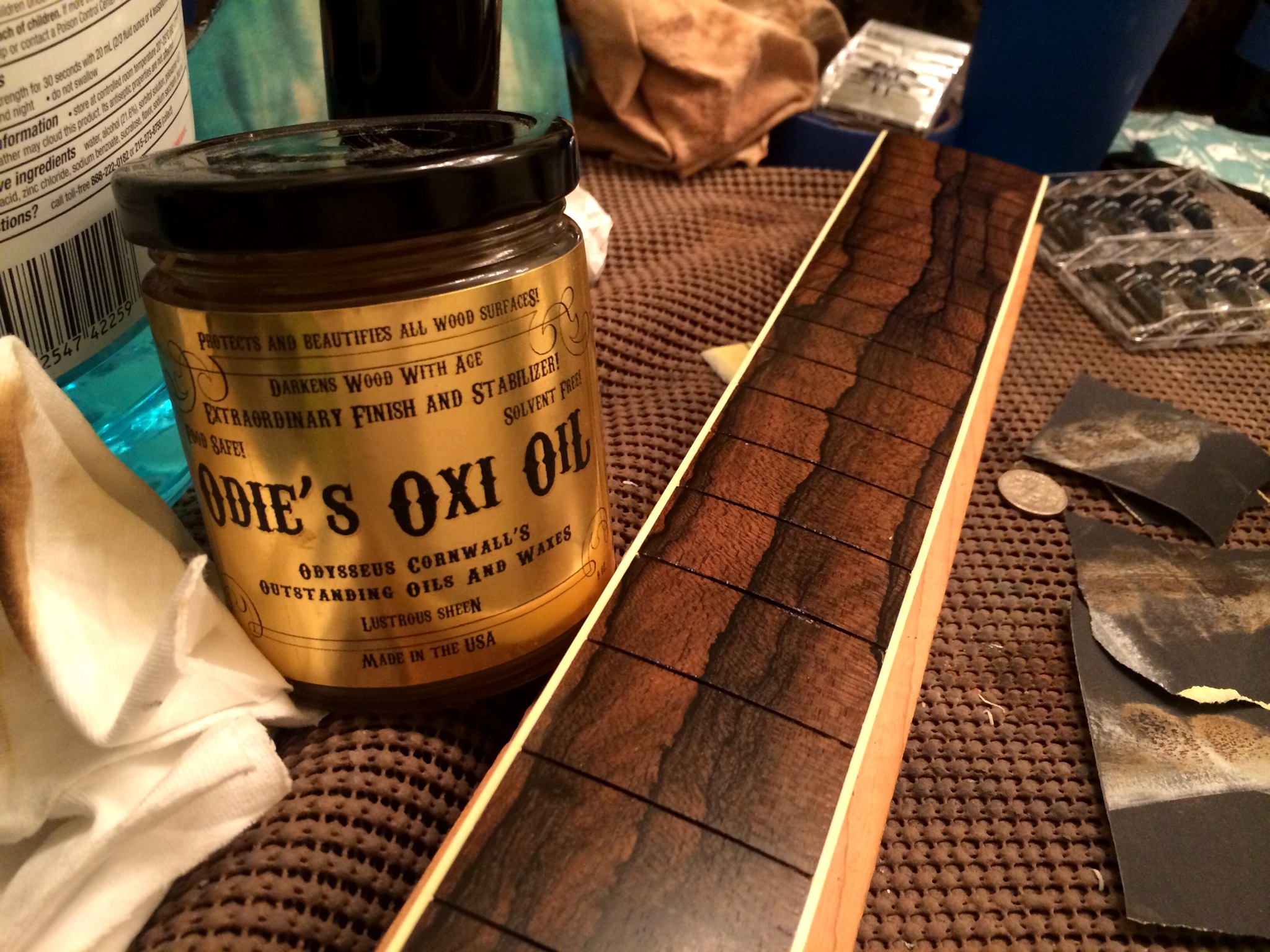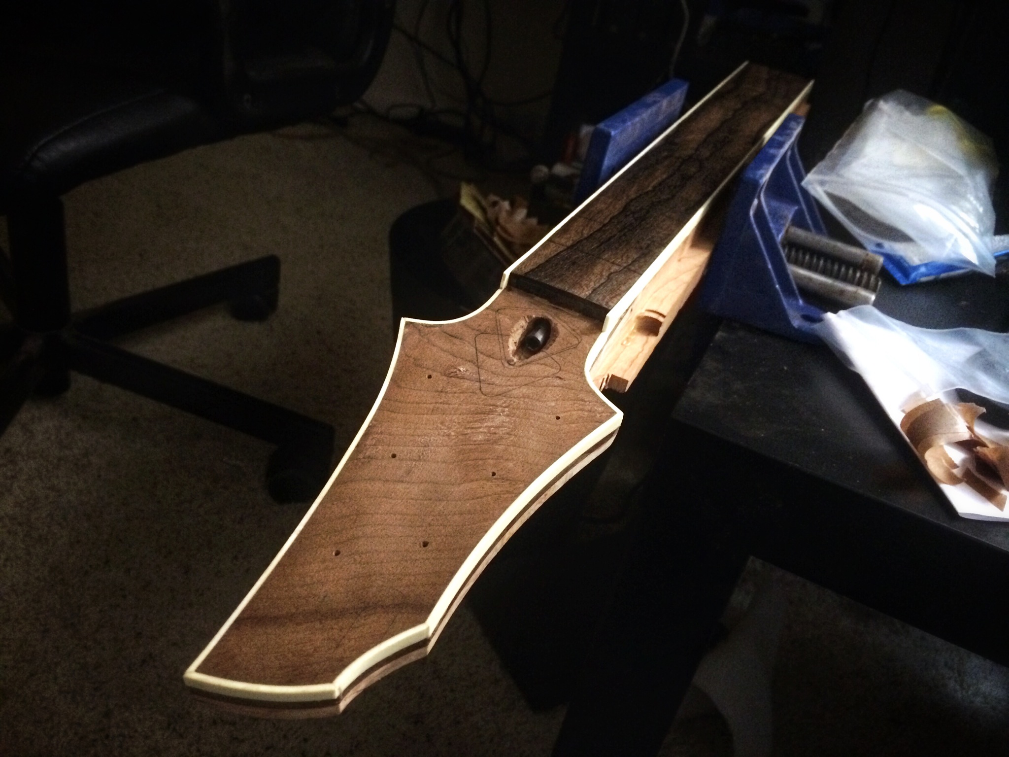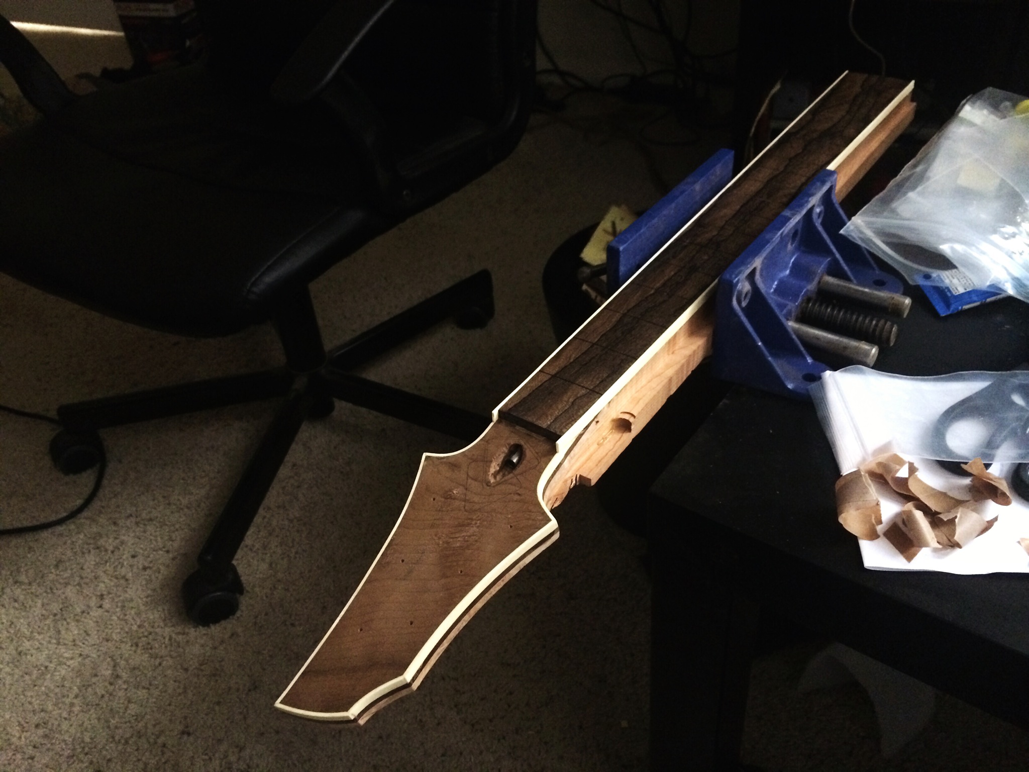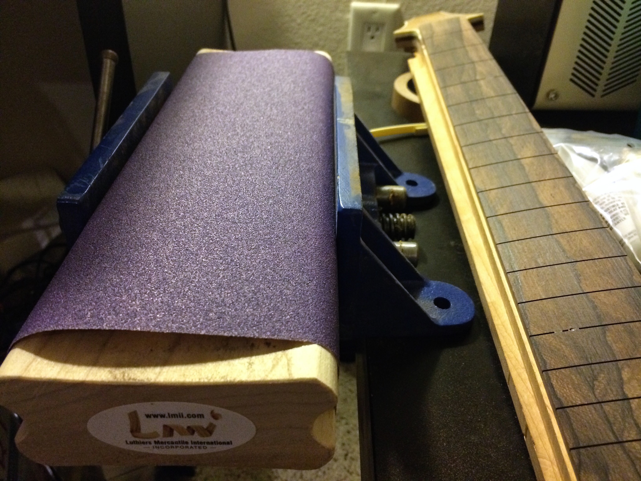 Got some great advice from Aaron Brown over at Blackwater Guitars. He said to radius before I bind. Now looking at it, it seems simple but had I not followed this advice I would have been pulling my hair out trying to find a way to deepen the slots after radiusing to 16in. Thanks Aaron.