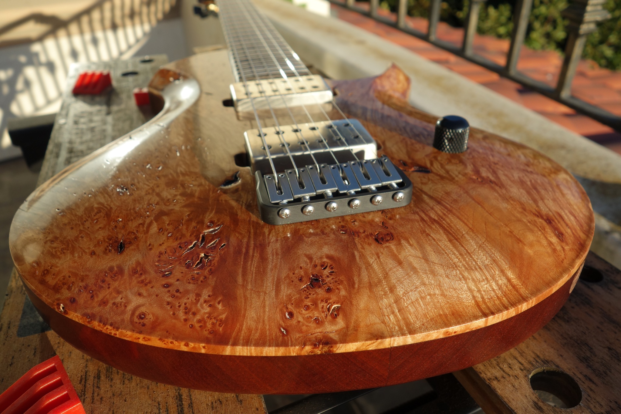 2. Great work, I really love the carved top. I’m a big fan of single cuts. As I was admiring the photos I realized you have two pickups and a single knob, no switch! What’s going on with the wiring?