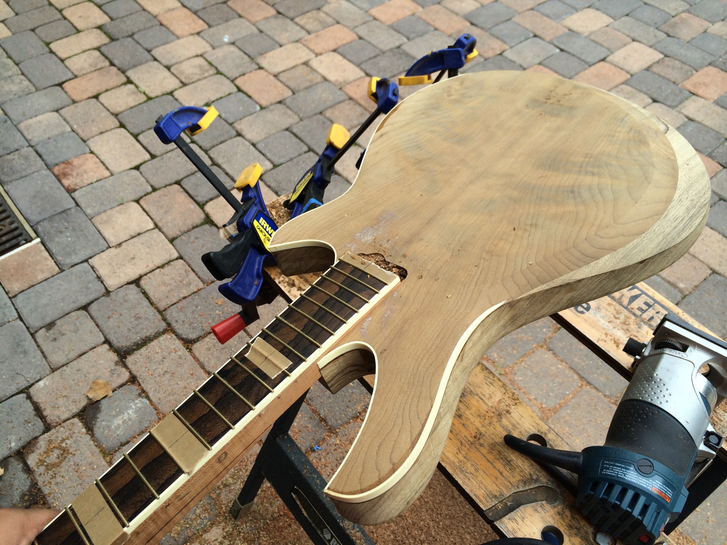 After I’m all recovered from the flu I’ll be routing the hum-bucker cavities and control cavities and then we’re on for my favorite part!—body finishing!!!