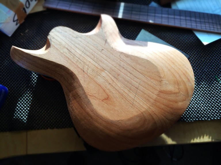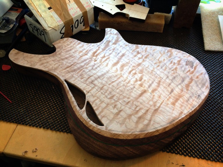 Roger’s body is finished for now. I’ll be finishing his neck up soon and will route everything soon afterwards once the neck pocket is complete. It’s getting that maple pickup set from Blackwater Guitars, hand wound by Aaron Brown. It’s a p90 alnico V neck and a Neo Modern bridge. I’ve tried them in two very different guitars and they are a spectacular set of pickups.
