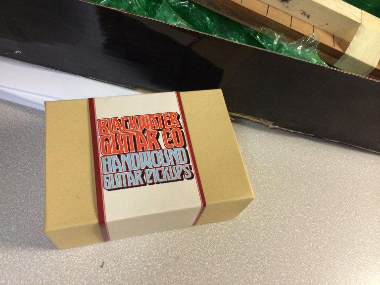 I recently had the opportunity to try out some new pickups from BlackWater Guitar Co. run by Aaron Brown in Texas. I’d ordered some pickups before from him for two of my other builds which were rock and metal oriented, but this time i wanted something different. I wanted a lower output pickup to change things up. Over the course of a month or two we talked about music and playing styles, and the particulars of what we liked in a pickup. Interestingly our tastes in what a good pickup aligned, even though the music that we both played differed. In the end I left it up to him to make a set for me as he saw fit. A few weeks later a box appeared at my door and I had my new zebra Dirt Wizard Set.