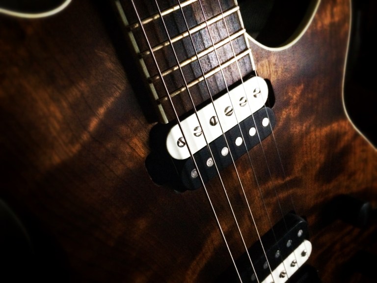 The bridge is wound to approximately 8.7k and the neck at about a 7.4 and the benefits of a lower output set of pickups was almost immediately apparent to me. On the clean channel both the bridge and the neck are defined in the low and low mid, crisp without being harsh and brilliant without being sibilant. When switching to the gain channel, my threshold for saturation became a lot higher which allowed me to coax some serious blues and soulful sounds from my amp (6505+) which was never its intended purpose. I reached a fantasic balance between saturated gain without sacrificing clarity around 10-11 o’clock on the Pre/Gain knob. I tried some of my favorite Haunted Shores chords (check out guitar messenger for a class with Mark Holcomb) and every single note rang out full and clear. I don’t usually play with the neck pickup much unless recording leads but i find myself using it in conjunction with the bridge for strumming cleans. Its a beautiful combination which can suit many styles of music.