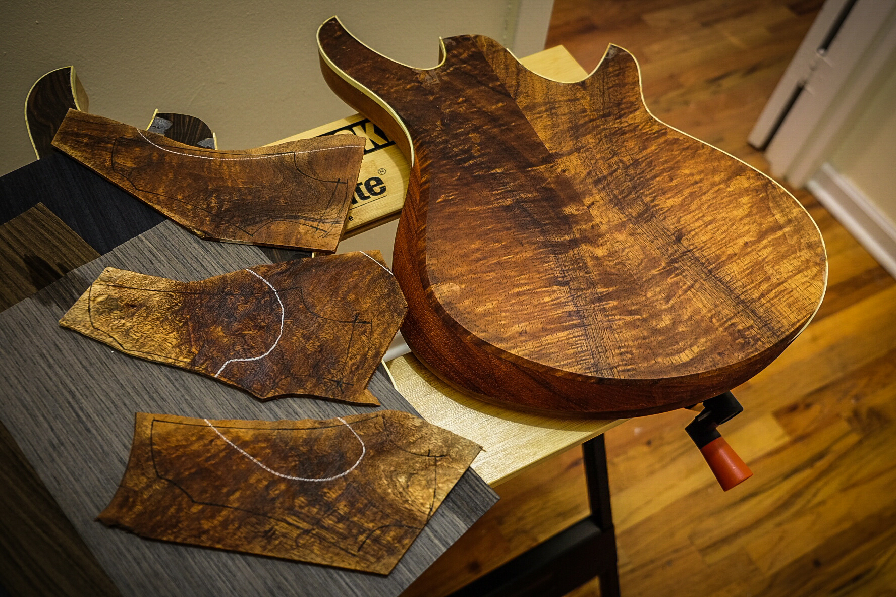 This is exciting. New job as a first year internal medicine resident, new camera, and three builds planned. The only difference this time is I’m receiving some help from some amazing people. Kyle Van Derwart from VanDerwart Guitars in colorado, and Aaron Brown from Blackwater Guitars. Kyle’s helping me with some of the big cuts for the body and necks and Aarons helping me with precision slotting of the fingerboards and with some custom designed pickups which I’ve had in mind, mostly cosmetic stuff. The core pickups for the Koa will be my favorite Pathos pickups which are on my personal multiscale guitar. The ebony build will sport a low output neck pathos or dirt wizard pickup and Aarons Elder God Bridge pickup. These will be 26 scale length with ebony fretboards. The rest of the specs will be forthcoming.