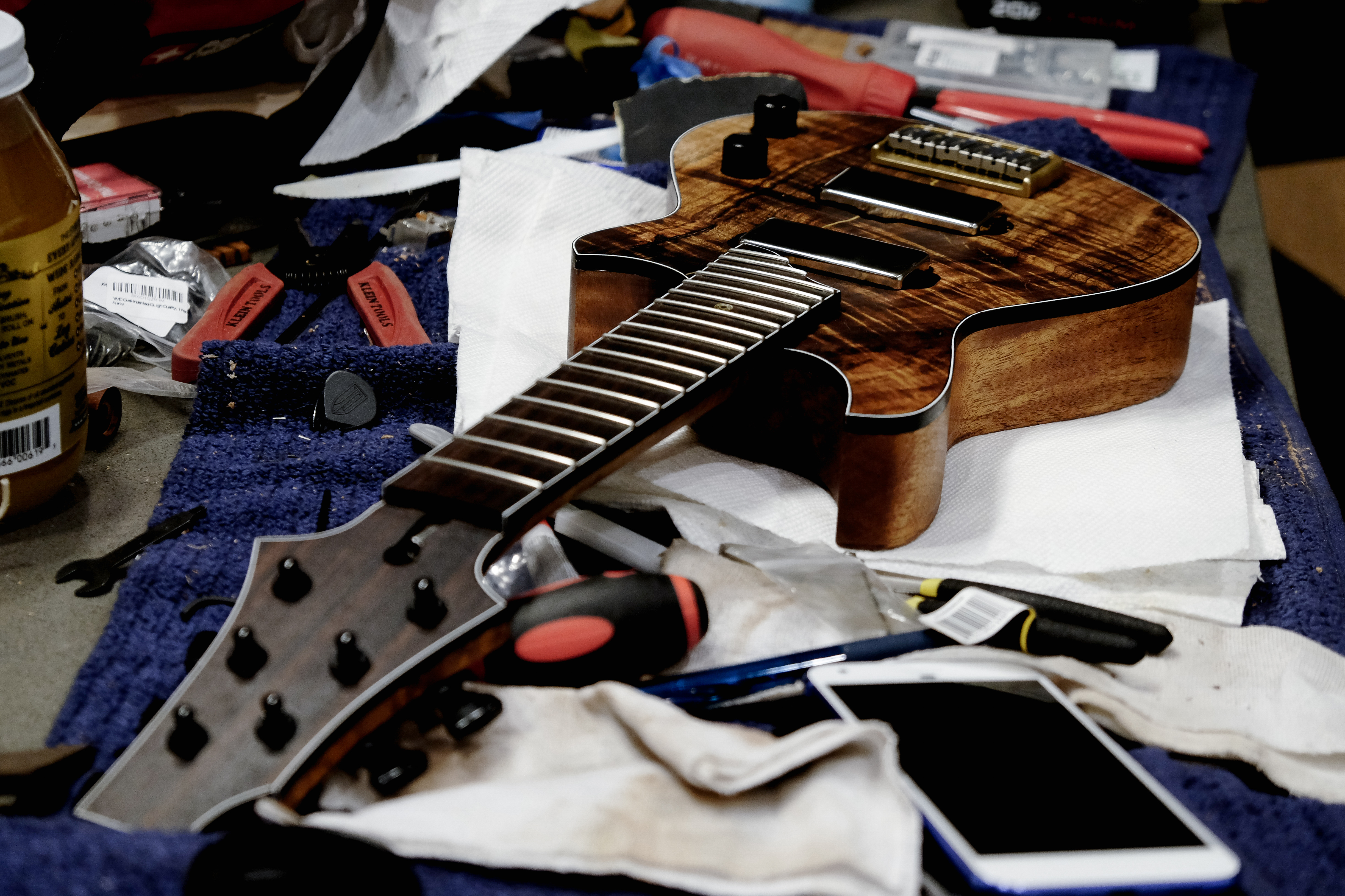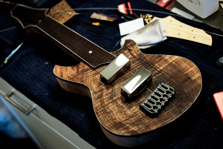 Jescar frets, Hipshot hardware with string saver saddles, Bourne’s pots