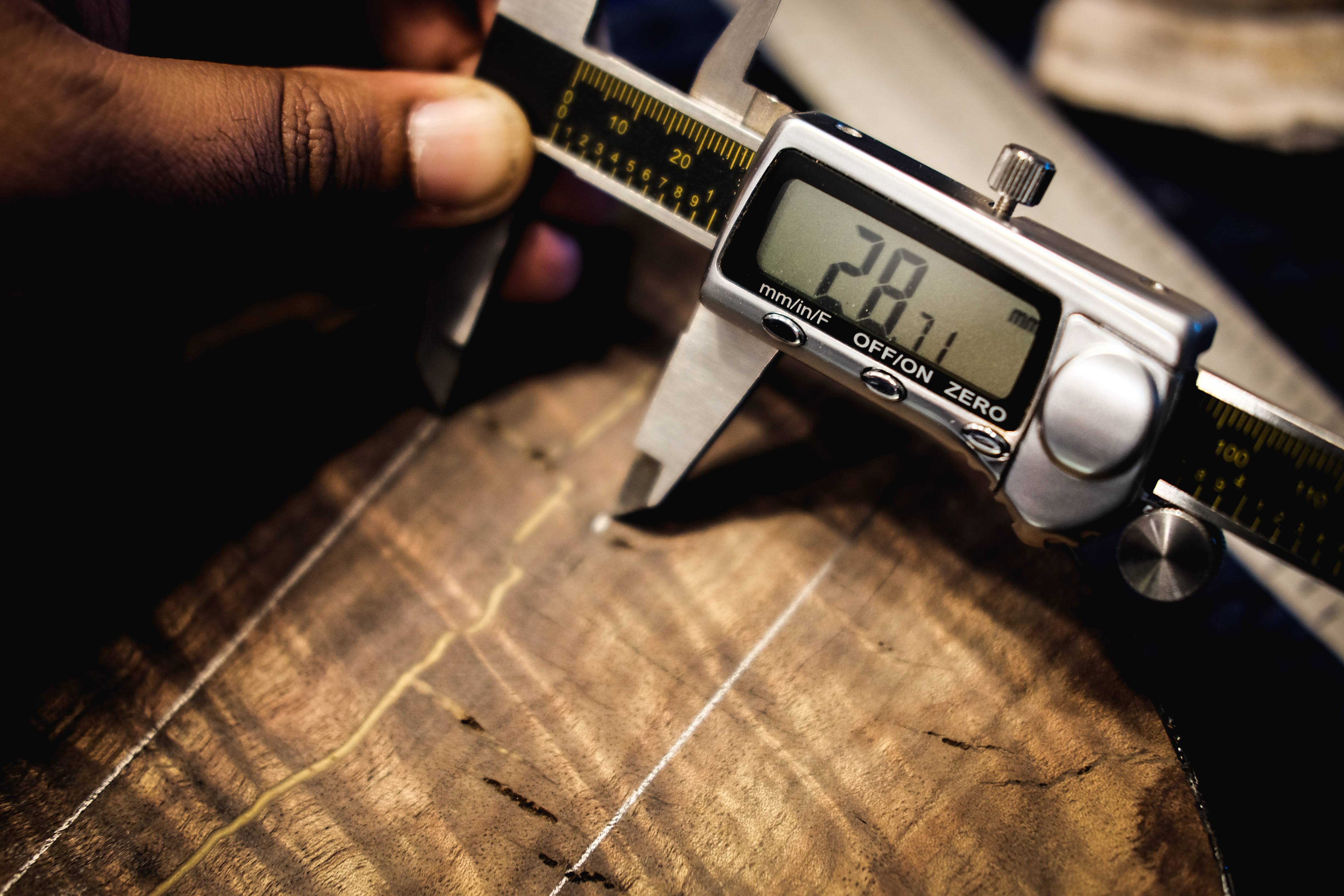I was working nights and only had moments in the shop but I had this itch I couldn’t scratch till this project was done. I went back to the shop after a long shift to find that the top had fractured all the way through to the body wood and had checked and shrunk all over. I was two steps from throwing it all into the bandsaw when Paul and Tim from the woodshop suggested I try stabilizing it with epoxy. They mentioned the Japanese art of kintsukuroi which is fixing pottery with golden lacquer. The philosophy being that the piece is more beautiful now because it was once broken. I loved the idea and figured if I could salvage this at all I’d do it and keep it for myself instead of selling it.